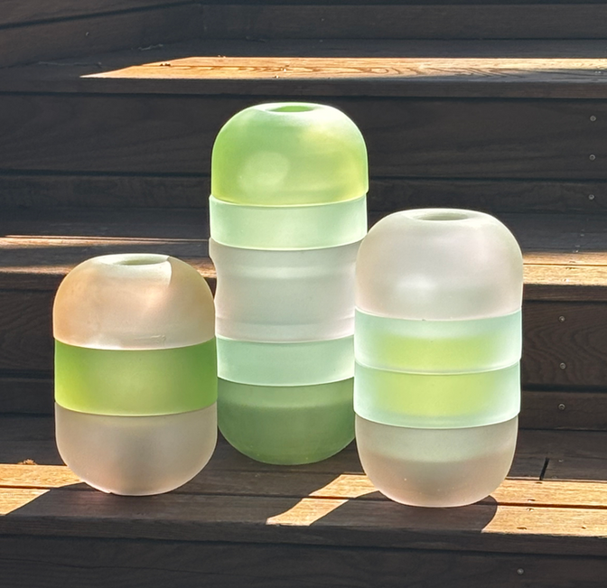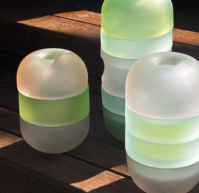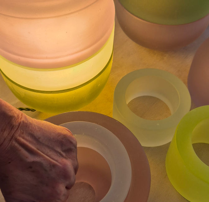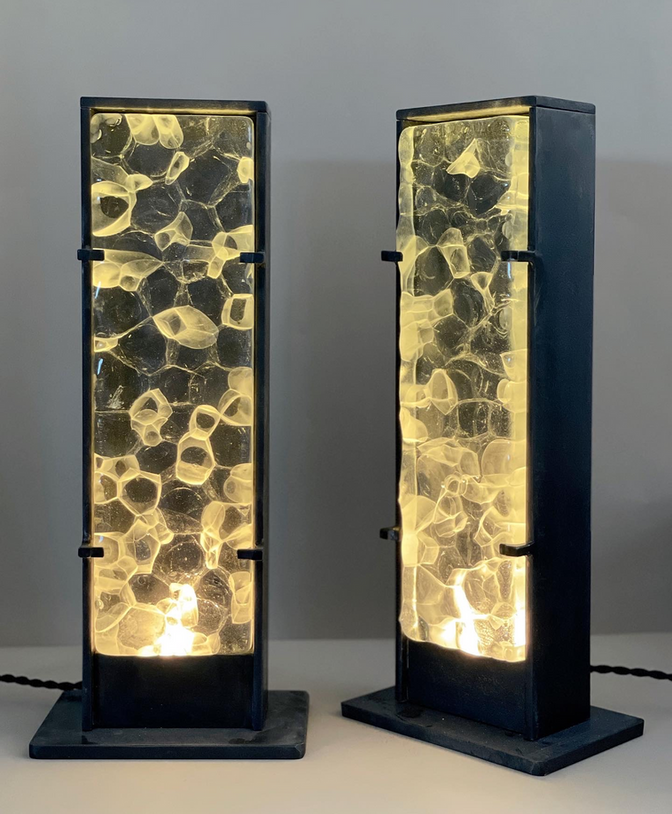 Lampes de table , grès et pavés de verre fusionnés , pâte de verre taillée